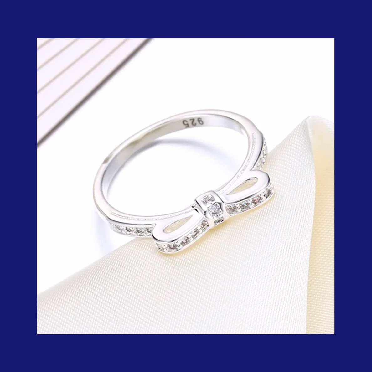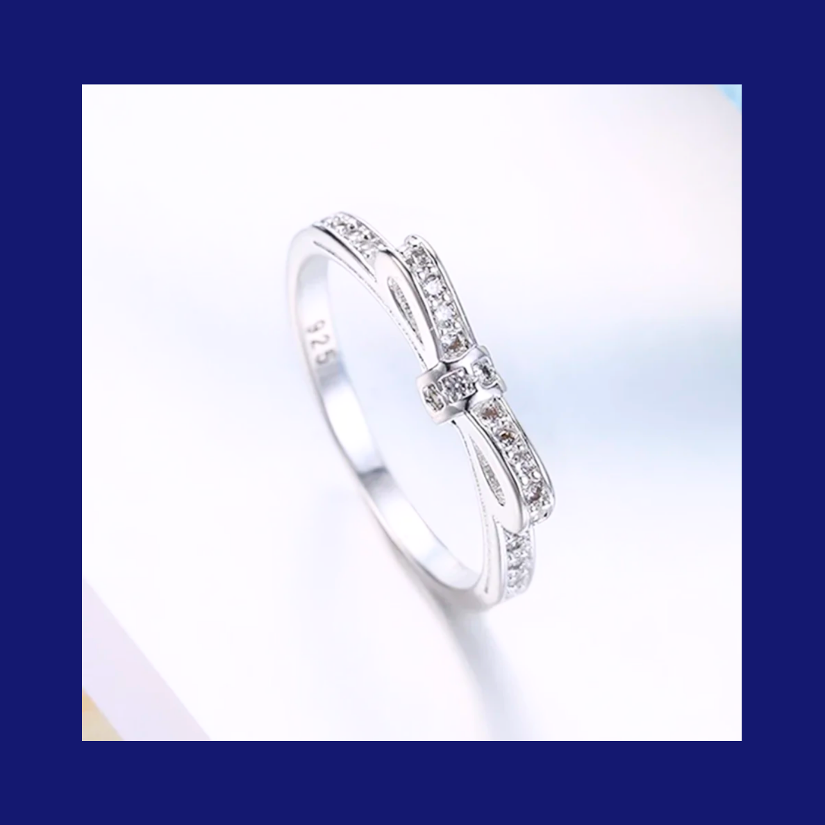 Anillo de Moño en Montura de Plata con Zirconias incrustadas.