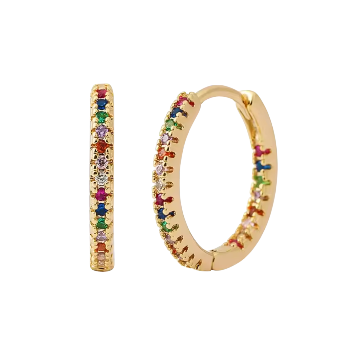 Arracadas Delgada de Zirconia en colores Arcoíris Color Dorado