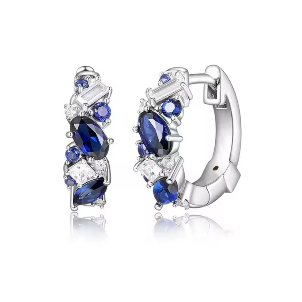 Pendientes Arracadas Zirconia natural con Zirconia Azul tamaño Chico